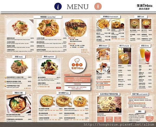 生活PASTA複合式餐飲台中店菜單