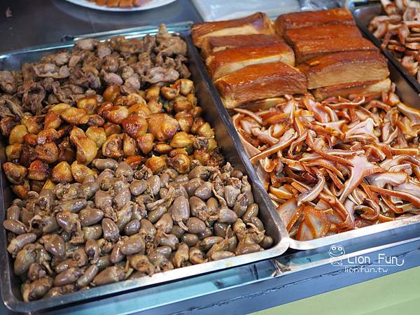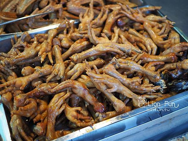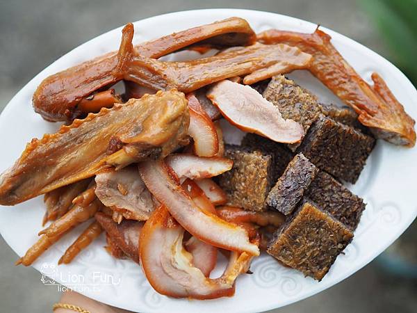 燻茶鵝、油雞、百頁豆腐、米血、黑輪片、豬頭皮、鴨翅、鴨腳、雞腳、雞腱、雞心等等