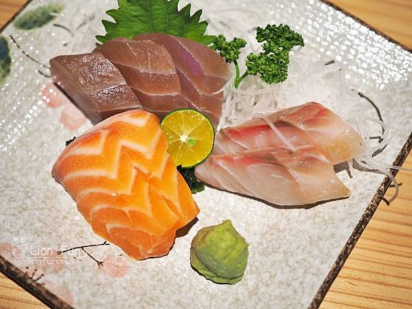 來到日式料理店一定要吃生魚片阿!!點了一套綜合的,有鮭魚、鮪魚、紅魽