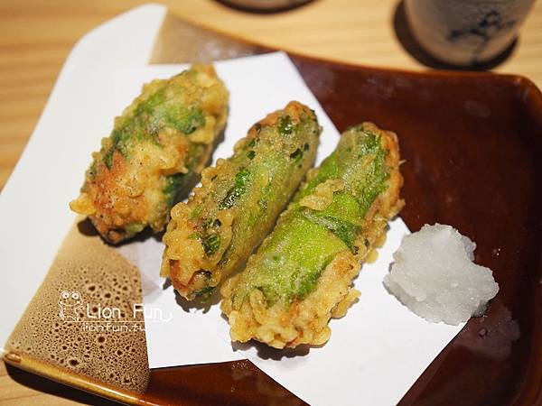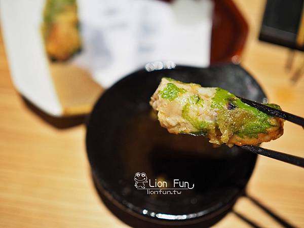 紫蘇包著干貝與花枝漿,吃起來相當有嚼勁,是Q彈的口感