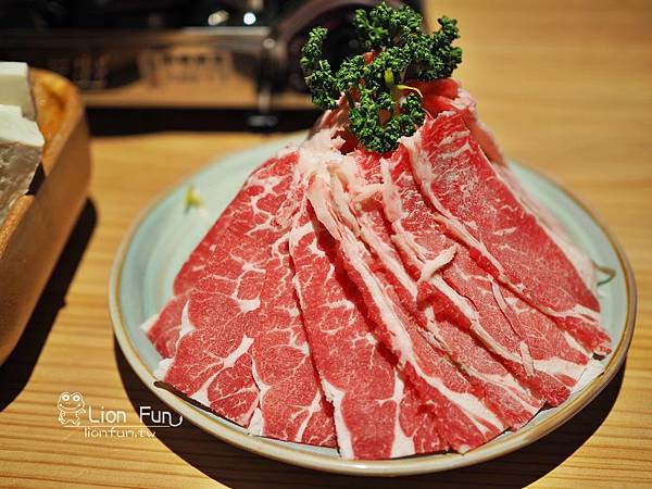 牛肉雪花分布均勻,色澤非常的美,下層為豆芽菜