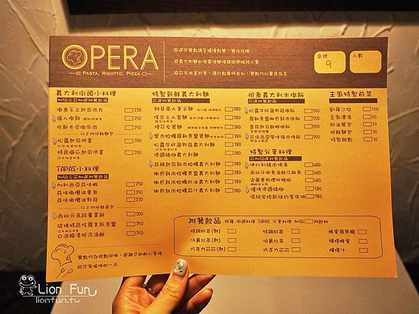 ▍歐培拉義式餐坊-菜單