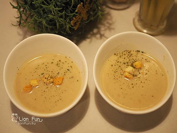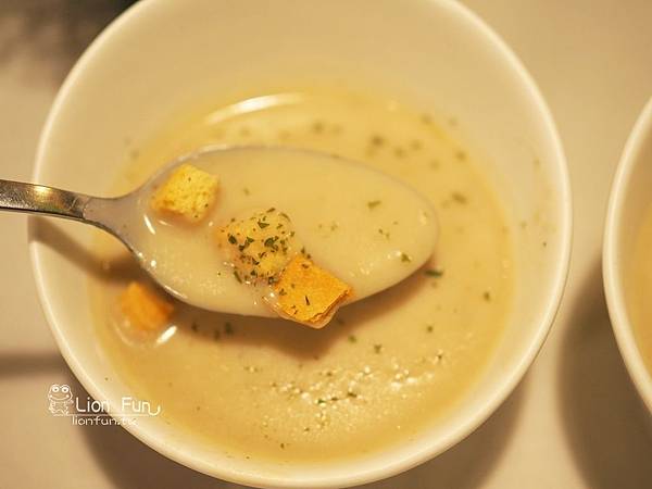 先來一碗店家自己熬煮的濃湯墊墊胃!!
