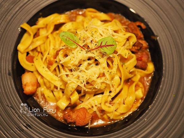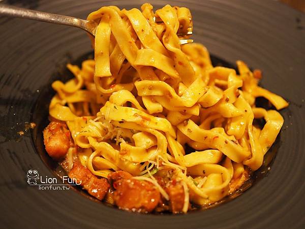 別於以往吃到的細麵條,這一款義大利麵是選用粗麵條