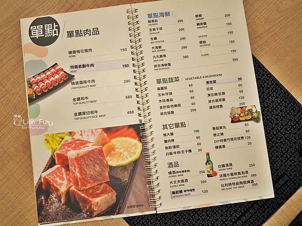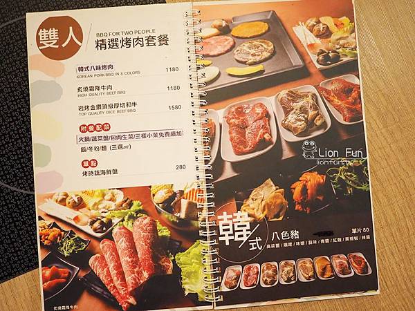 提供單人與雙人鍋物,另外還有雙人烤肉套餐