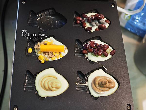 不抹酥油或乳瑪琳,直接將魚漿倒入到模型中,加入各種餡料