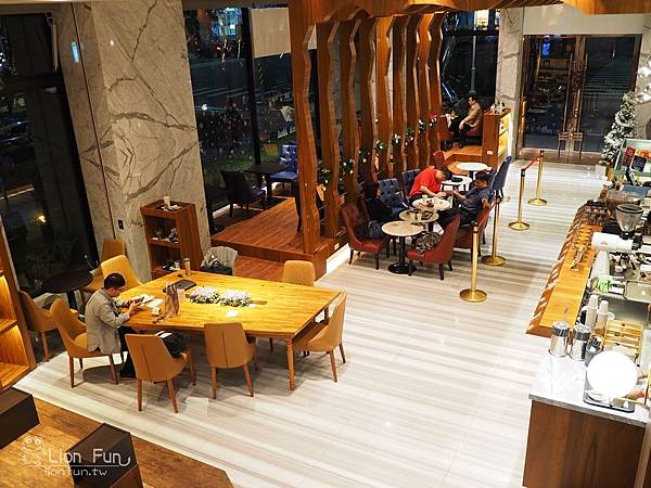 高挑空間,總共分為一二樓,一樓前端為兩人座位為主,後面有長面桌椅