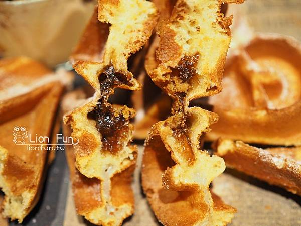 鬆餅切開有分有包餡料與沒包餡料的,比較像是格子鬆餅的口感