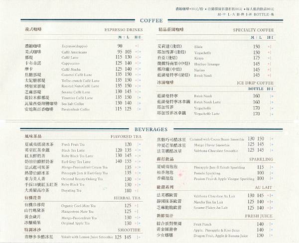 另外還有各式各樣的甜點與飲品,茶類與咖啡都有