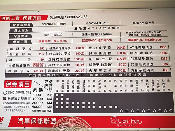 大祐保養廠提供清楚的保養價目與更換時間,對於我們來說很方便