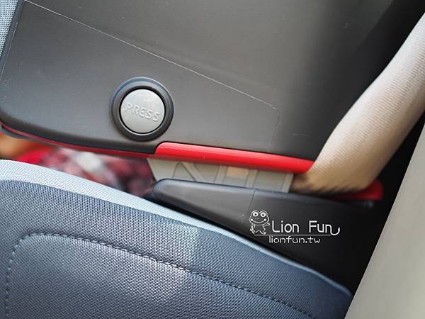 側邊按鈕按下去可以讓安全帶繫到理面,會更安全