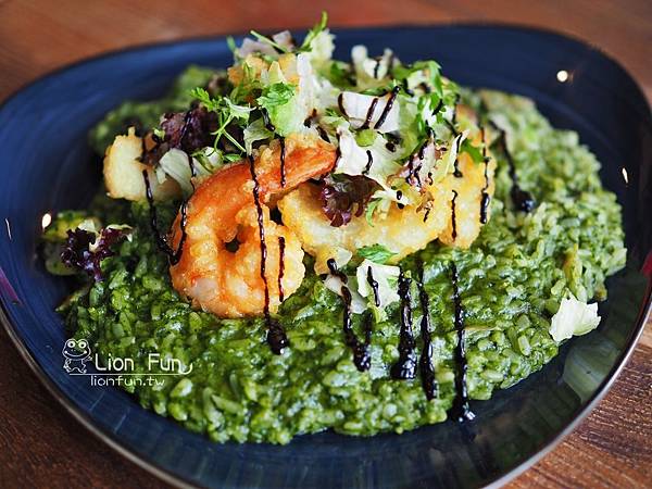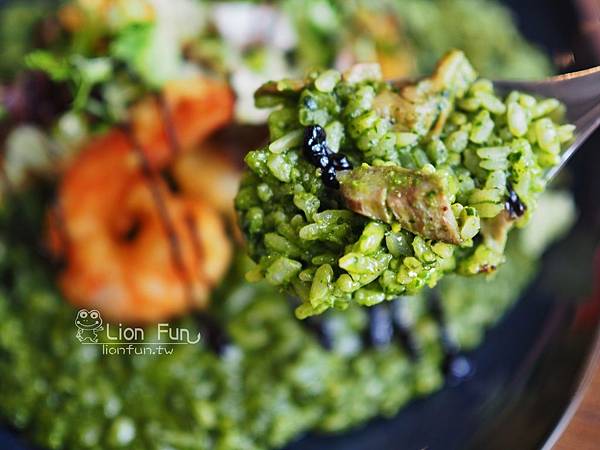 米飯吸附滿滿的青醬,每一口都能感受到它的香氣