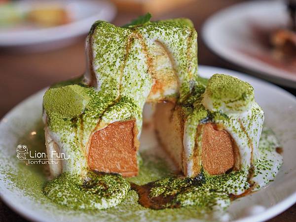 縮小版的吐司磚,吐司外酥內軟,沾上微苦的抹茶,絕對不會膩口