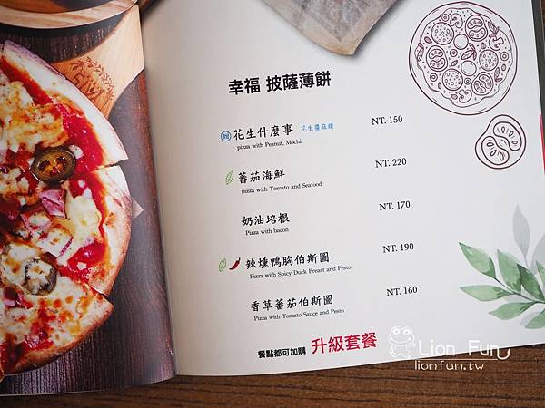 提供義大利麵、燉飯、焗烤、披薩、甜點、飲品、宵夜