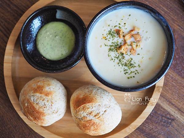濃湯濃郁不死鹹,搭配麵包享用或是單喝都很美味!!