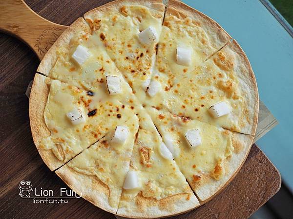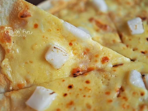 薄皮餅皮酥酥脆脆的,上面的起司也很罪惡,可以小小牽絲