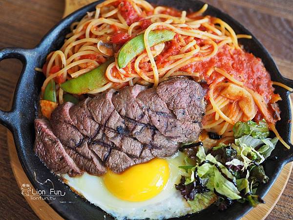 鐵板燒牛排的感覺,但使用的是鐵鍋!!