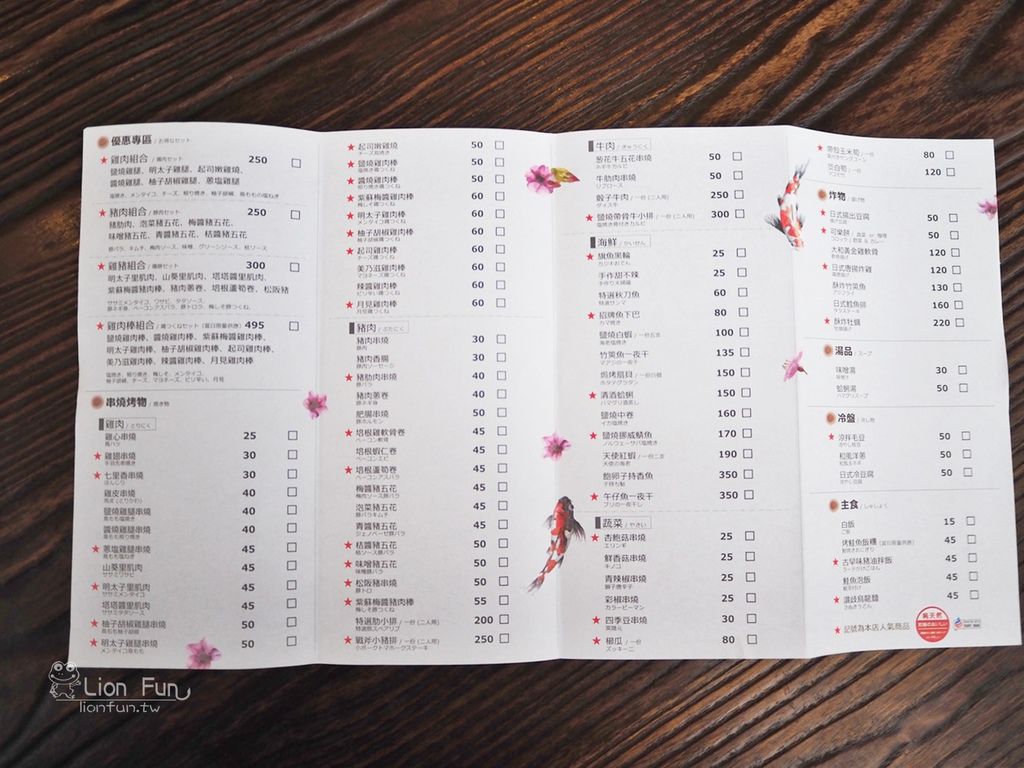 除了串燒外其他都是單點,價位從25元起跳,其他品項也不會很高,很超值