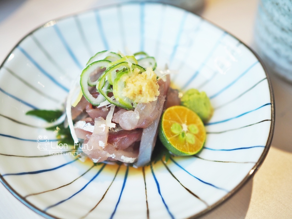 如果不太敢吃生魚片的話,炙燒是個不錯的選擇,帶有點烤過的熟度,底層還是有著生魚片軟軟的口感