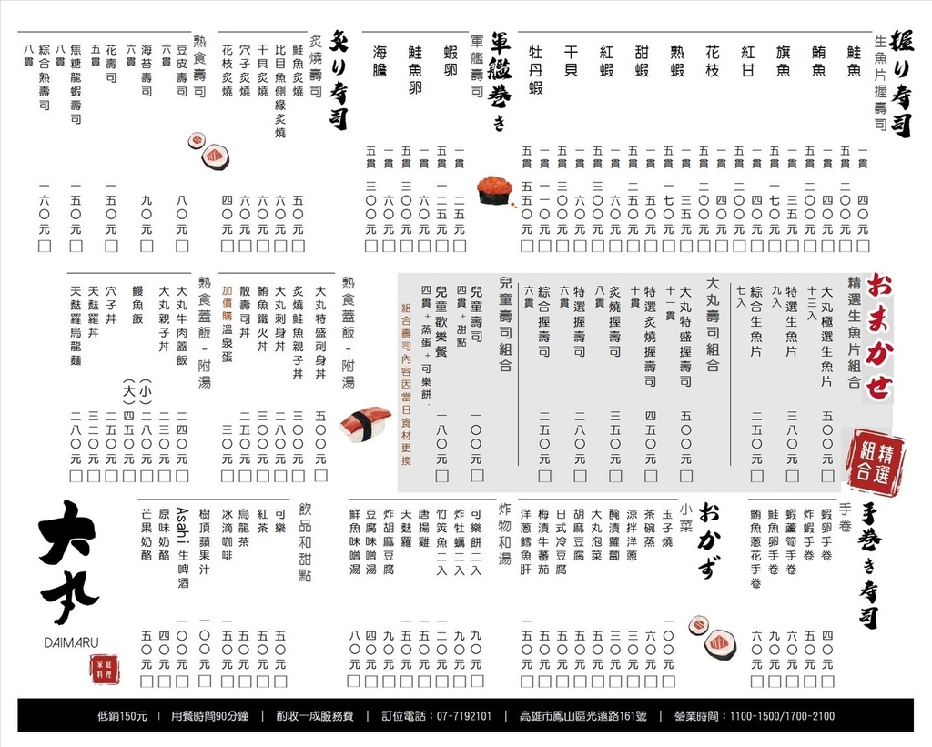 ▍鳳山日本料理推薦-大丸日式料理菜單