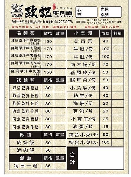 歐記牛肉麵是傳承爸爸五十年的好滋味,爸爸原本是開在中壢牛肉麵,後來在台中大里經營,目前已經退休,現在由第二代接手目前開在台中太平區
