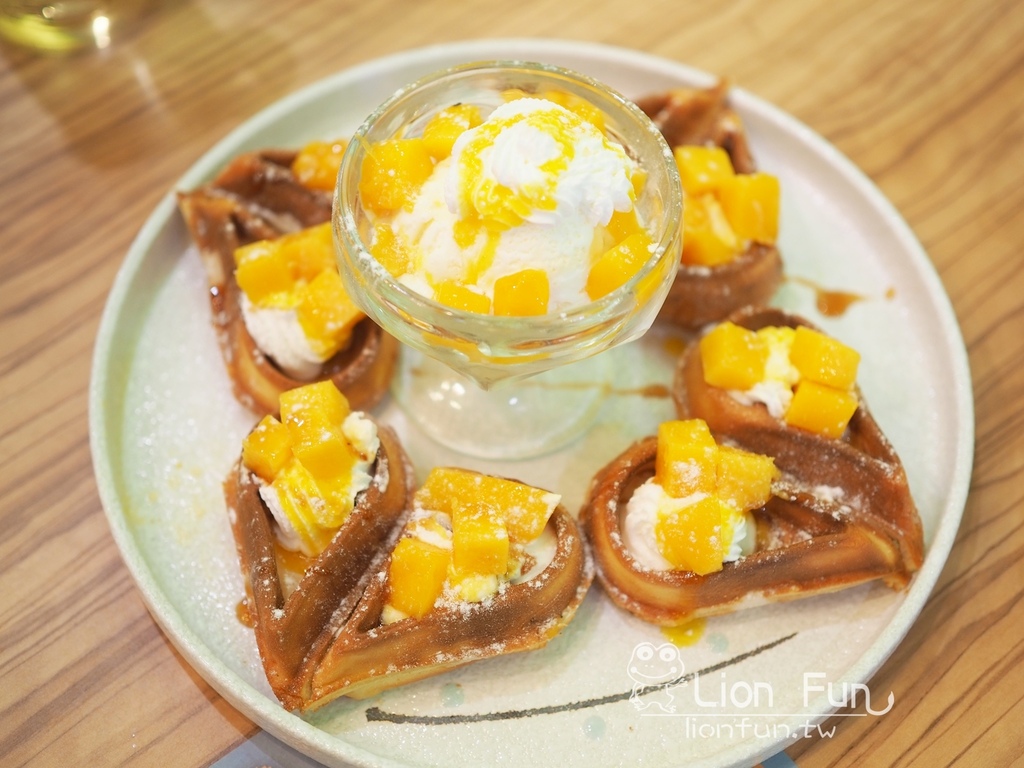 本身鬆餅裡面有加麻糬,吃起來QQ的,不會有膩口的感覺!!