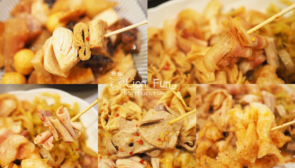 豆乾、米血、黑輪、腰花、海帶、豆皮、香腸、米腸、碰皮、百頁、酸菜
