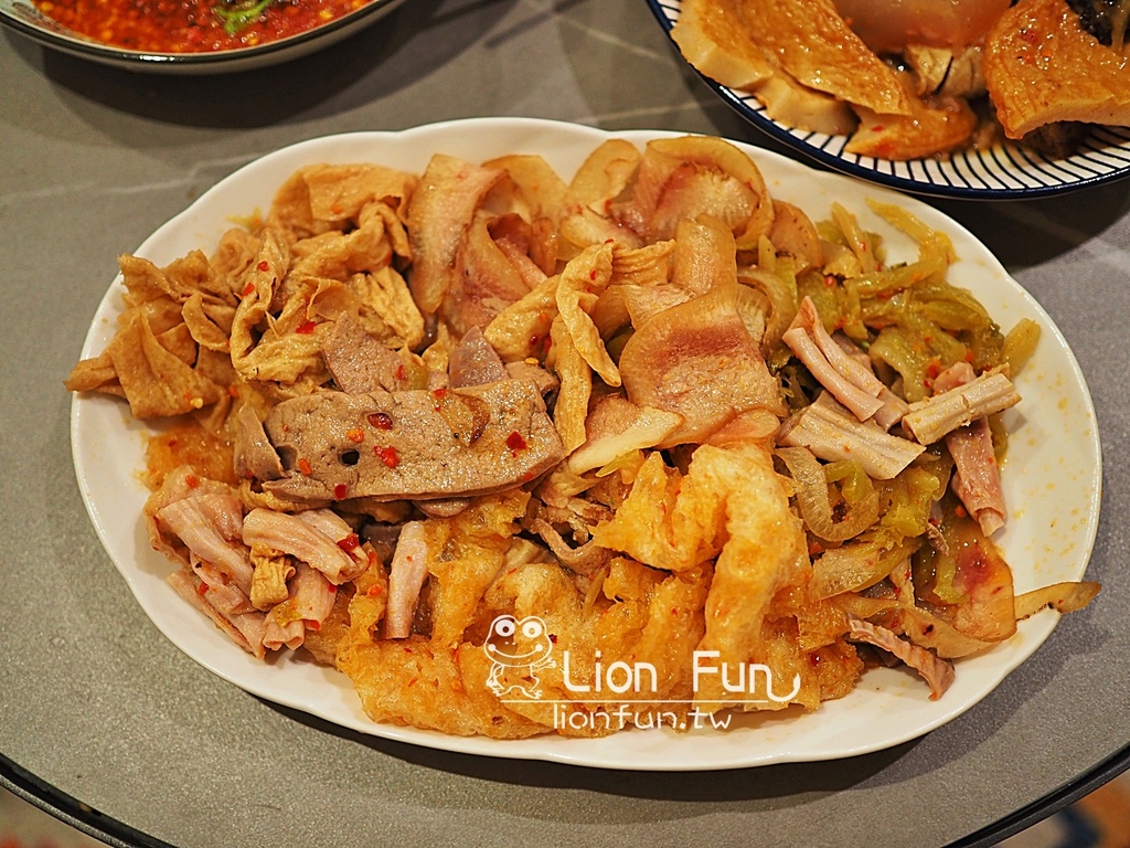 腰花、小麥卷、麻油粉肝、煙燻豬頭皮、招牌辣脆腸、碰皮