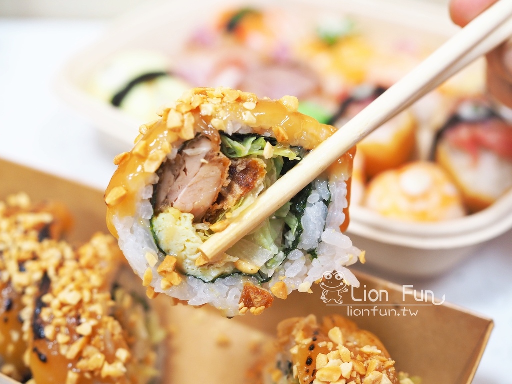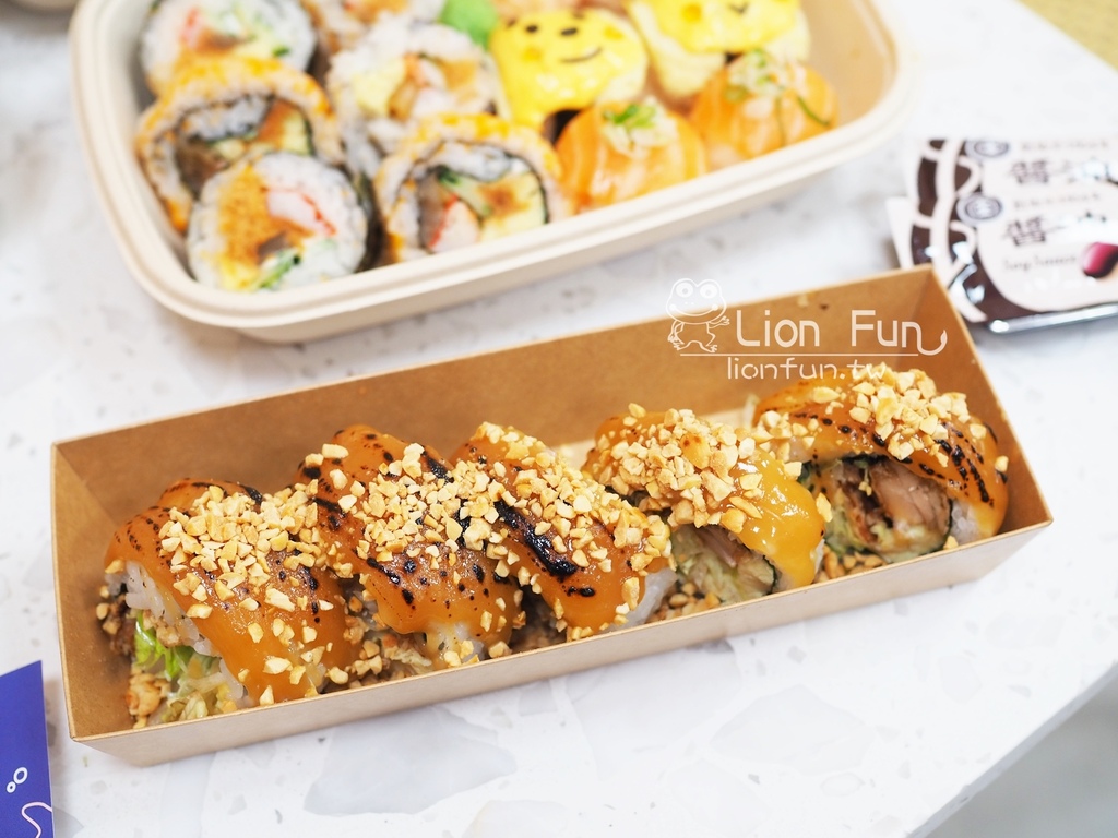 一條捲壽司有多種口味可以選擇~~這款是花生口味的,上頭有炙燒過味道更香