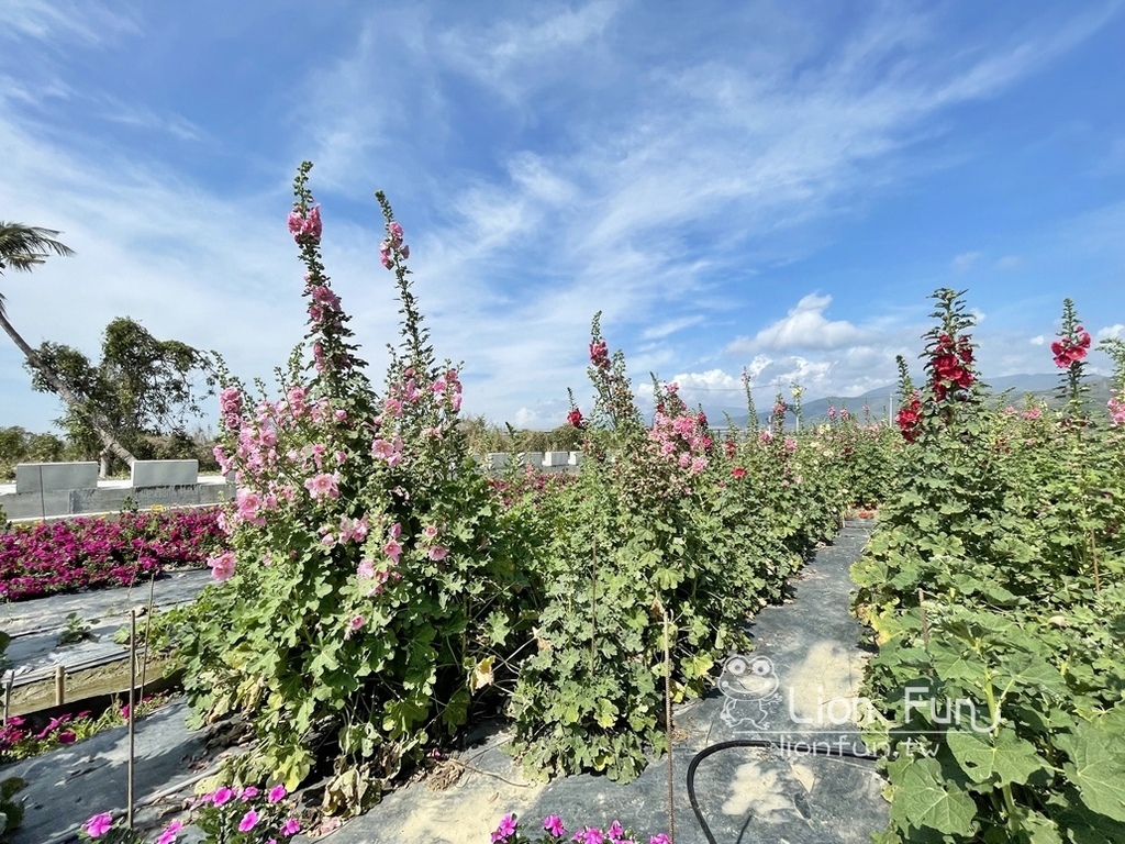 目前有超大片的蜀葵花可以拍照哦,都能自行在園區走走拍照