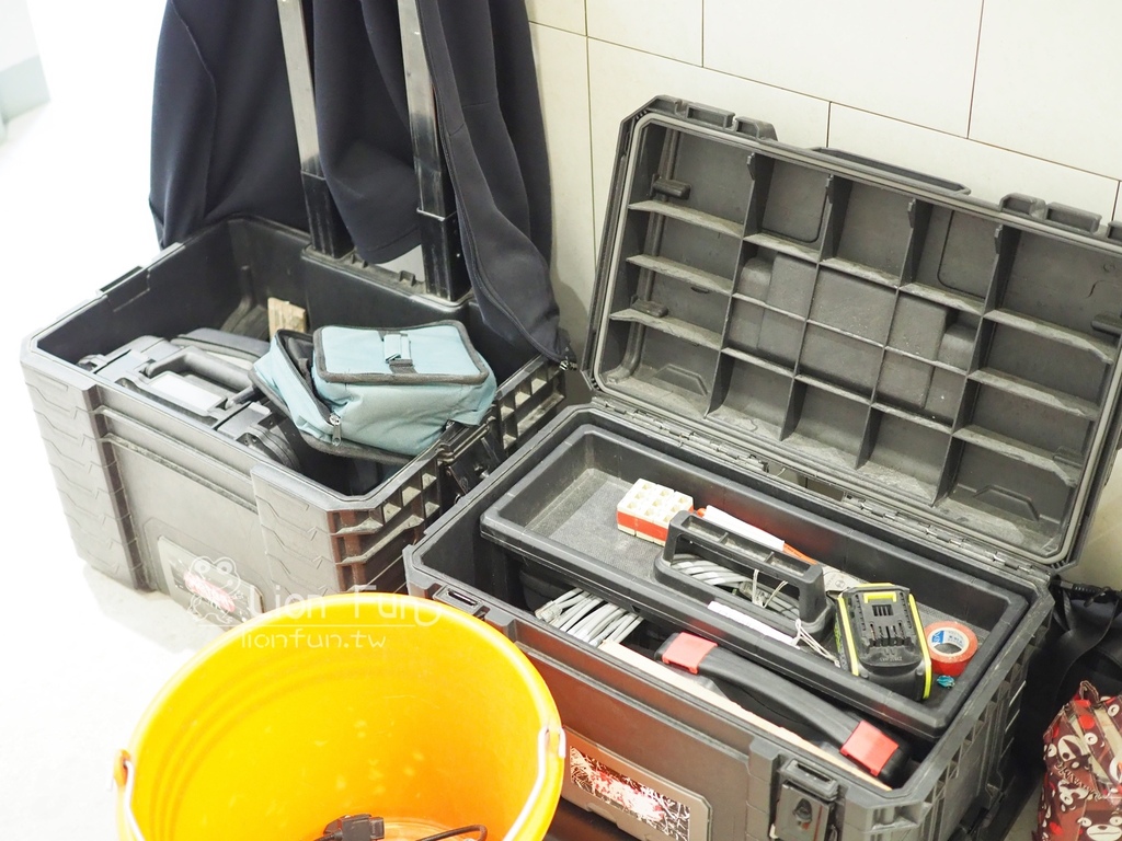 冷氣排水管也會爬上去測試,最後在說明時也告知之後冷氣安裝時,也可以請冷氣師傅再測試看看,畢竟距離安裝也還有一段距離