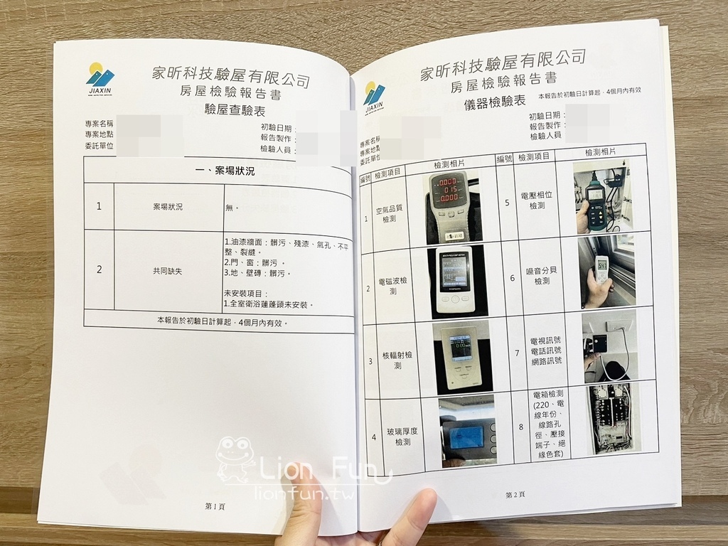 在諮詢的時候,就可以直接詢問檢測項目,家昕科技驗屋會提供詳細的圖表