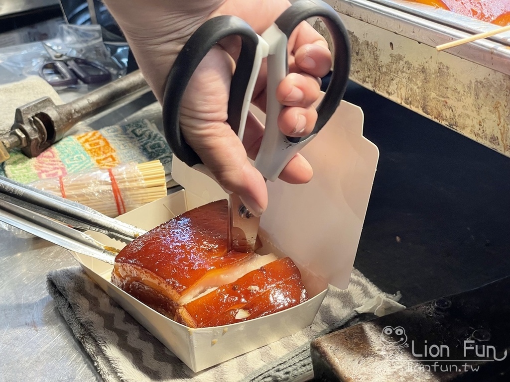 與一般吃到的做法不一樣,先把表皮烤過上色,再用獨家配方滷製5個小時