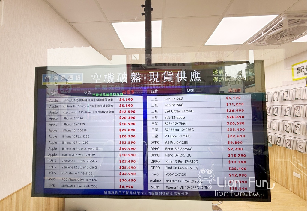 直接可以在傑昇通信官網、門市入口處大海報、門市內的價格傳單皆可查詢