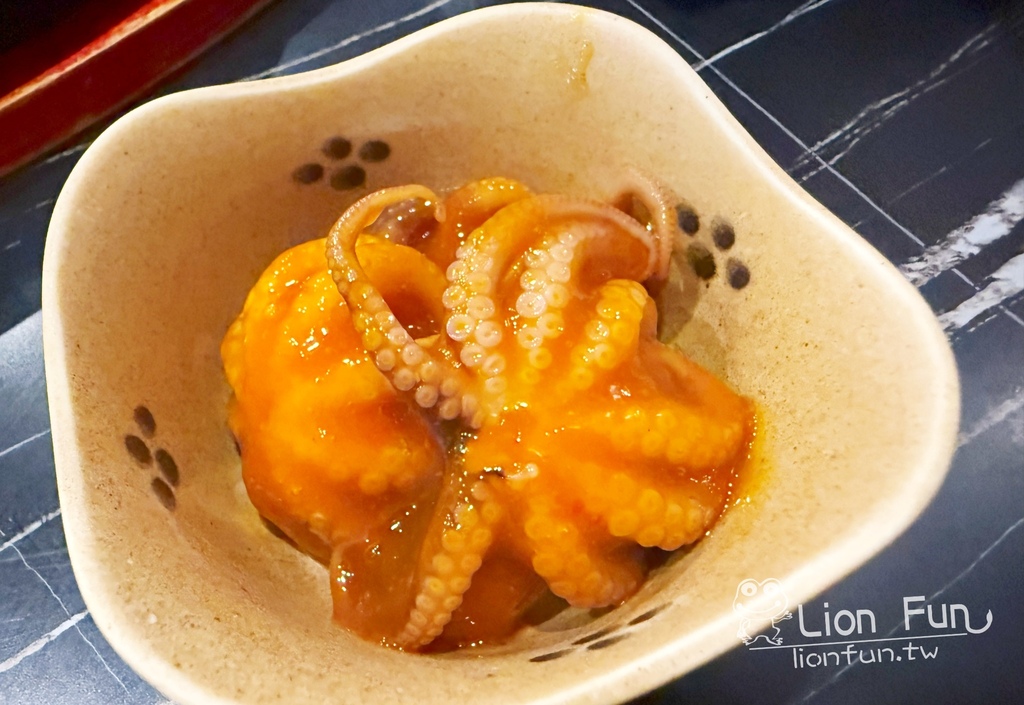 味付小章魚、67度溫玉子、脆口貢菜、珍味干貝唇、蓮藕片