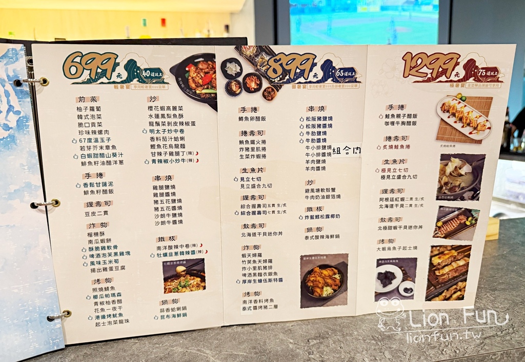 $699 輕奢宴:40道以上菜色可以選擇,基本都有串燒、炸物烤物、壽司、鐵板、甜點等