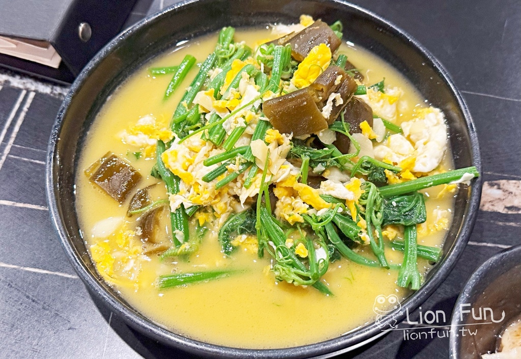 很特別的菜色,龍鬚菜搭配上剝皮辣椒蛋