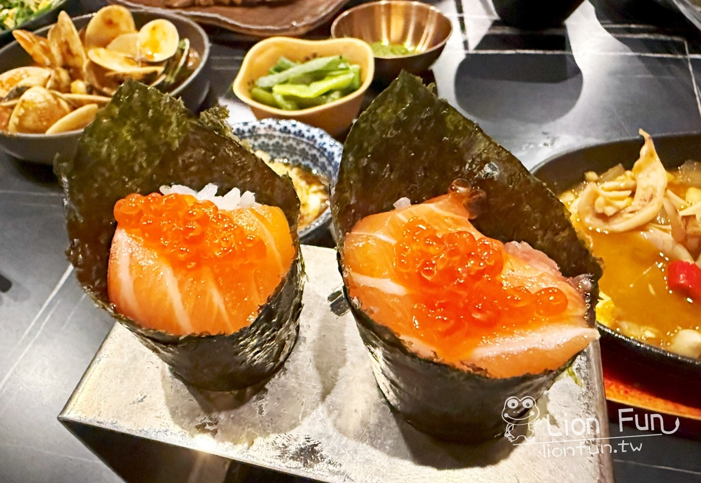 鮭魚親子手卷、鱒魚卵醋飯、炙燒鮭魚捲