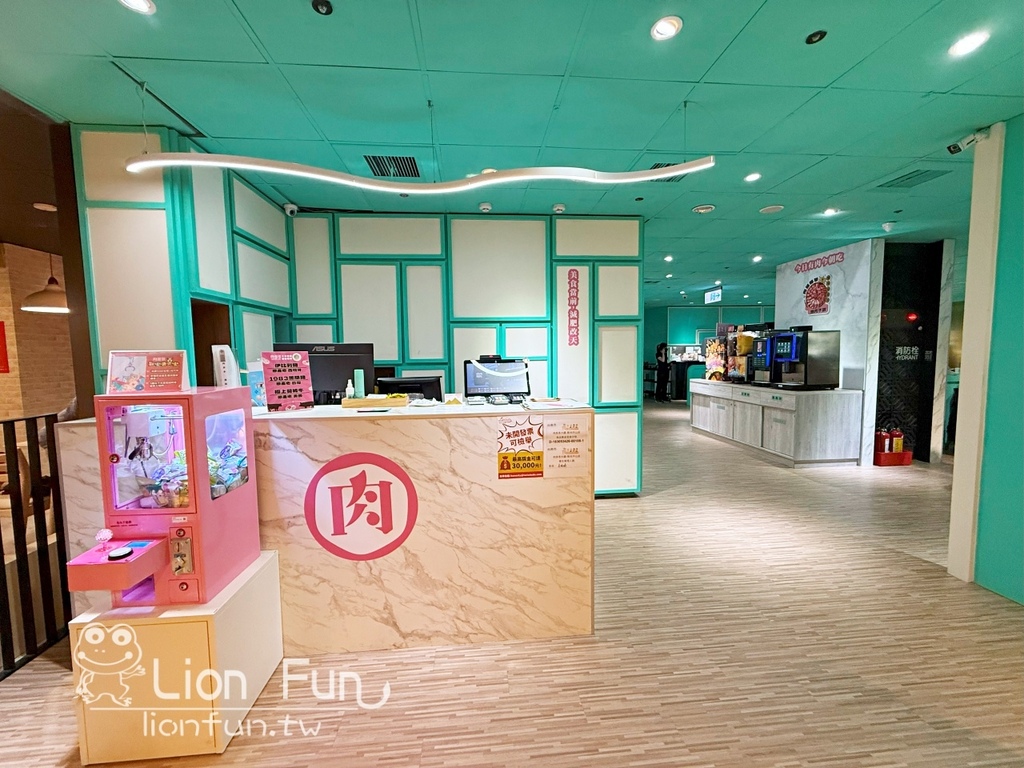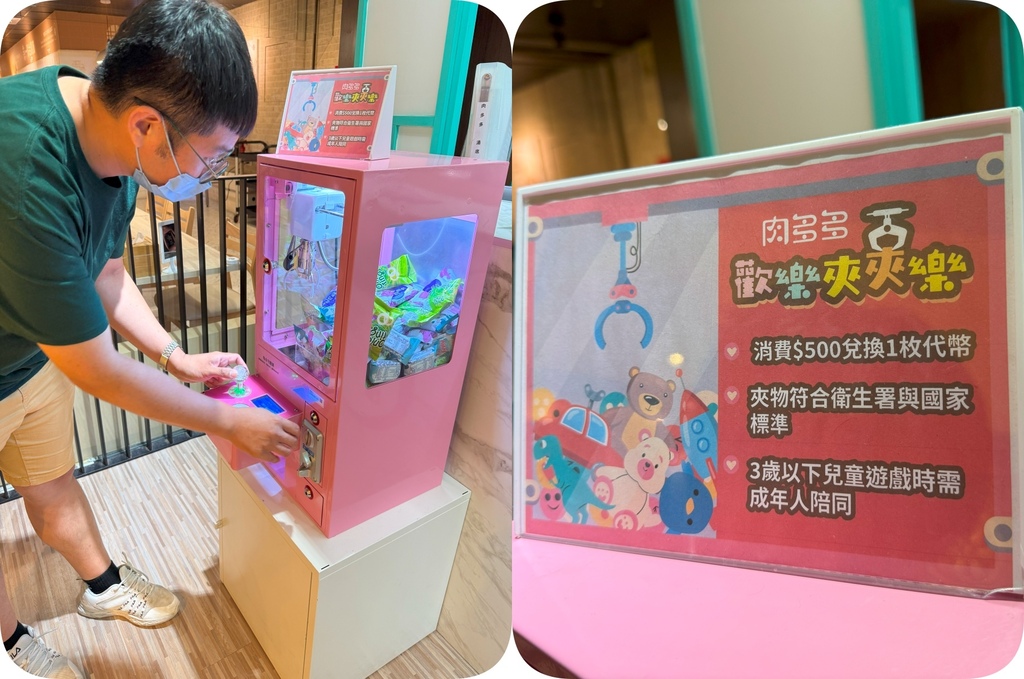 門口櫃檯前有娃娃機可以玩,消費滿$500元有一枚代幣~