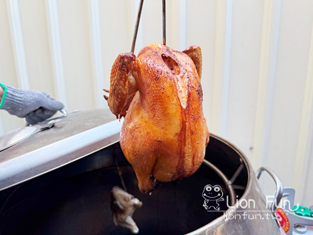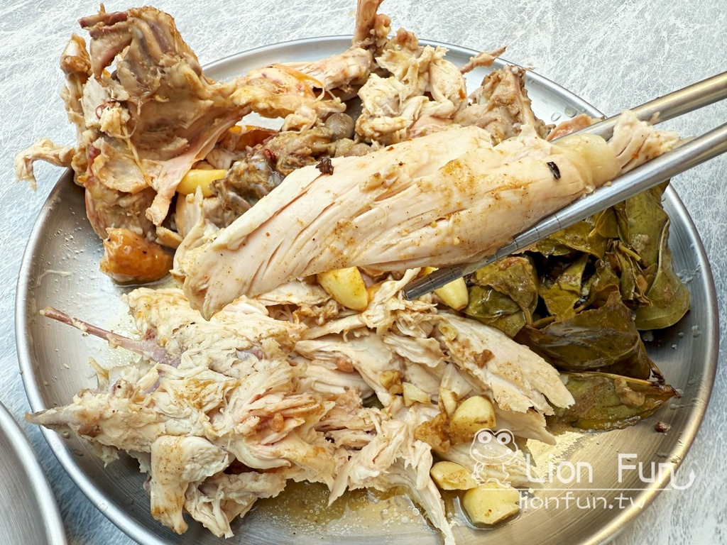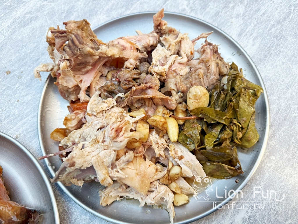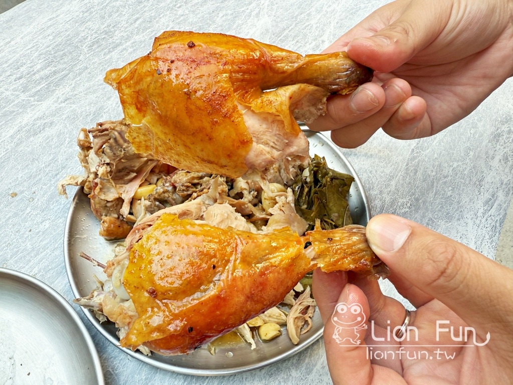 堅持使用當日現宰的黑羽土雞,塞進滿滿蒜頭和茄苳葉