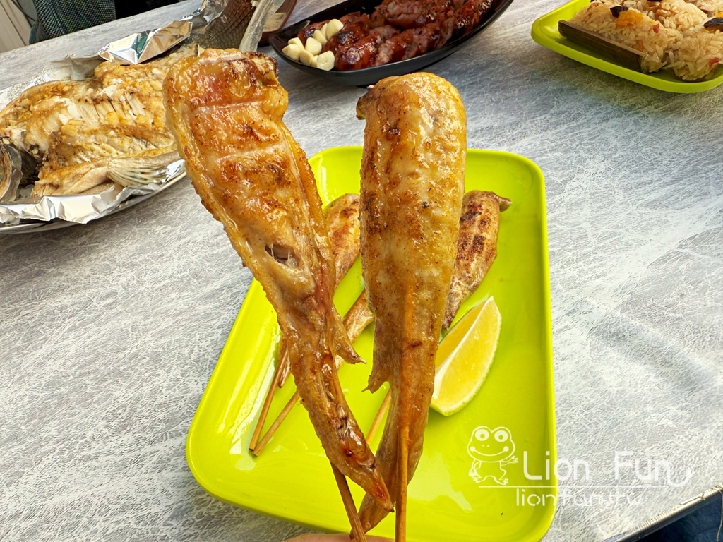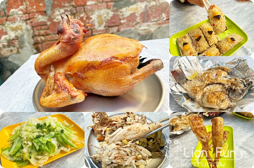 除了烤雞外,還有烤魚、蝦子、米糕、青菜、豬肉、湯等等可選擇