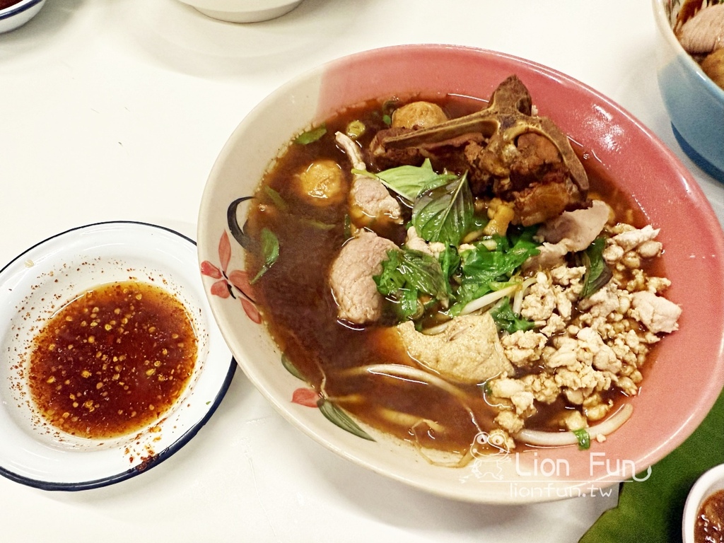 泰國船麵,搭配上湯頭與配料,份量足夠又美味!!